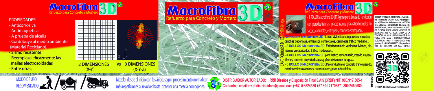 Desuentos hasta el 20% en productos MacroFibra 3D PET (Refuerzo para concreto) de nuestra empresa aliada 3RDF.